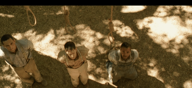 One of the most dramatic shots in the film is a three shot from above with three nooses dangling over the heads of our heroes.