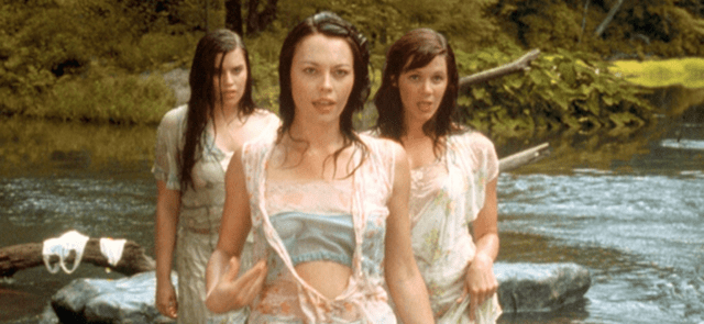 The Sirens are first shown in a long, wide three shot washing some items of clothing and unmentionables in the river. Then, they come forward in a trio that mirrors the shot with Pete in the foreground. One siren leading the others.